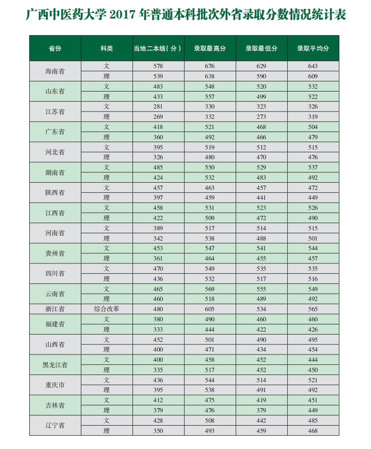 YABO鸭脖2017年普通本科批次外省录取分数情况统计表