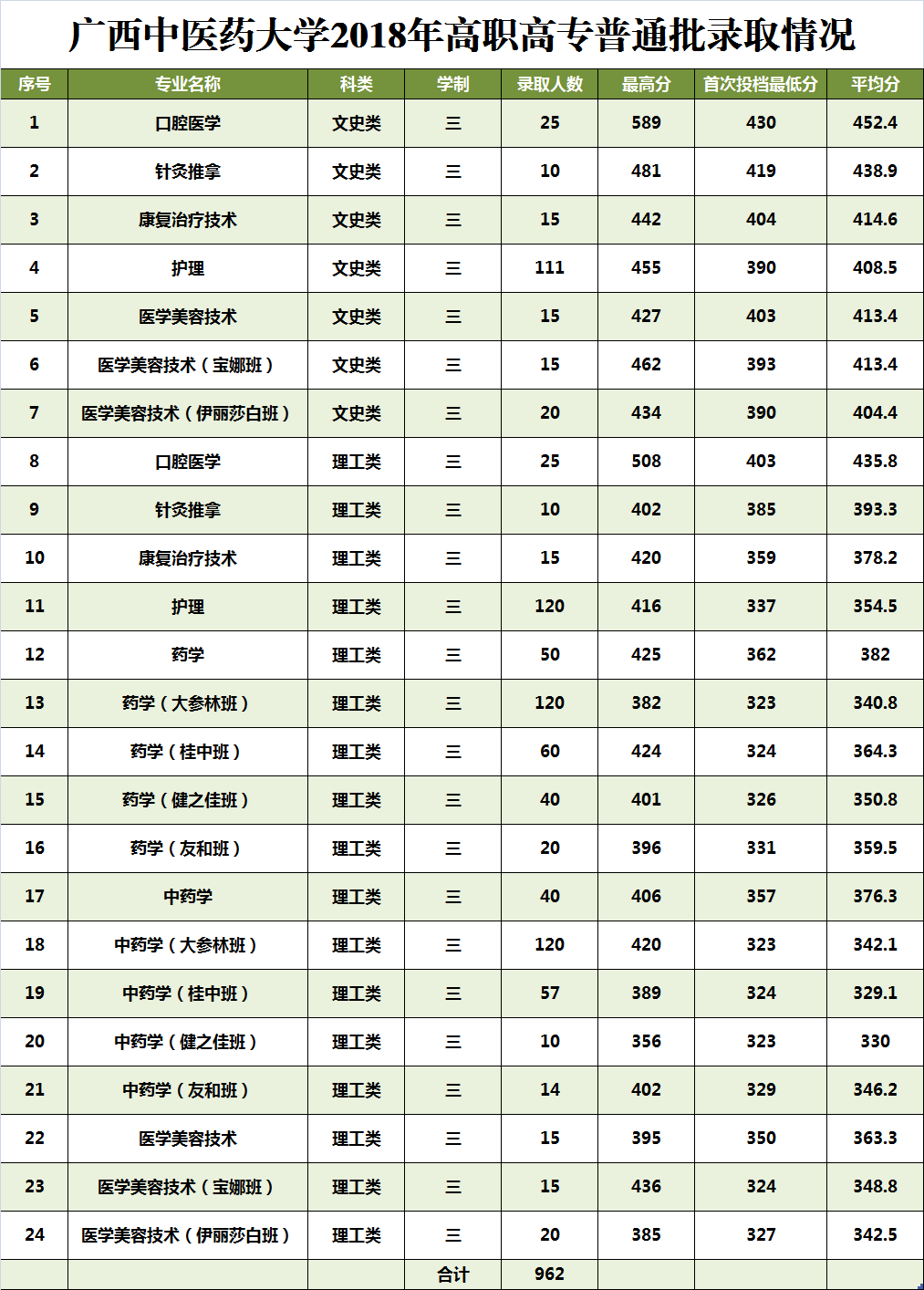 2018年录取进展-高职高专普通批 发布时间:2018-08-13 21:28:14 浏览次数: 次 【字体:小 大】 鸭脖2018年在广西高职高专普通批共录取考生962名,其中文史类211名,理工类751名,顺利完成该批次录取计划,详情如下: 录取结果以广西招生考试院公布为准,请被录取考生保持填报志愿时所留联系电话畅通以查收录取通知书。 分享到: 【打印正文】