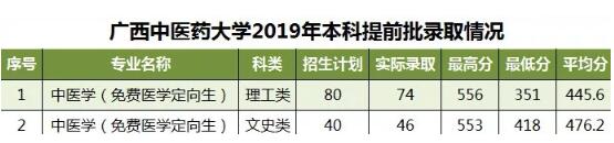 2019年录取进展-本科提前批(中医学-免费医学定向生) 发布时间:2019-07-08 10:19:46 浏览次数: 次 【字体:小 大】 鸭脖2019年共在广西本科提前批其他类录取中医学免费定向生120名,其中理工类74名,文史类46名。 录取结果以广西招生考试院公布为准,请被录取考生保持通讯畅通以查收预录取通知书。 分享到: 【打印正文】