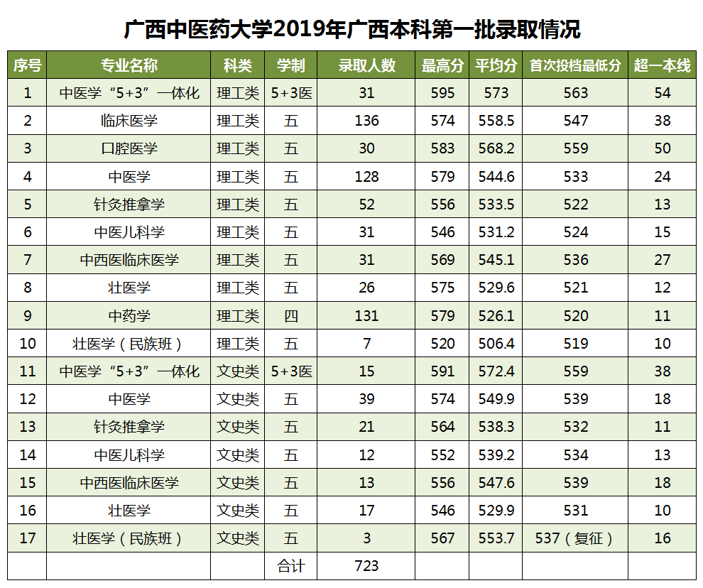 2019年录取进展-广西本科第一批 发布时间:2019-07-20 10:32:44 浏览次数: 次 【字体:小 大】 鸭脖2019年在广西本科第一批共录取考生723名(含民族班10名),详情如下: 注:广西2019年本科第一批录取控制分数线为:理工类509分,文史类521分。 录取结果以广西招生考试院公布为准,请被录取考生保持报名时所留联系电话畅通以查收录取通知书。 分享到: 【打印正文】