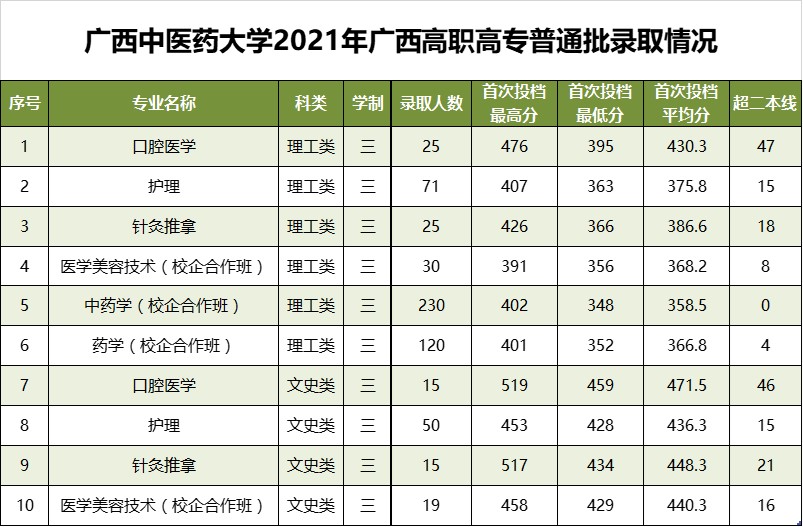 2021年录取进展-广西高职高专普通批 发布时间:2021-08-16 18:55:08 浏览次数: 次 【字体:小 大】 鸭脖2021年在广西高职高专普通批共录取考生600名,详情如下: 注:2021年广西普通高校招生录取本科第二批录取最低控制分数线:理工类348分,文史类413分。2021年广西普通高校招生录取高职高专录取最低控制分数线:理工类180分,文史类180分。 录取结果以广西招生考试院公布为准,请被录取考生保持报名时所留联系电话畅通以查收录取通知书。 分享到: 【打印正文】