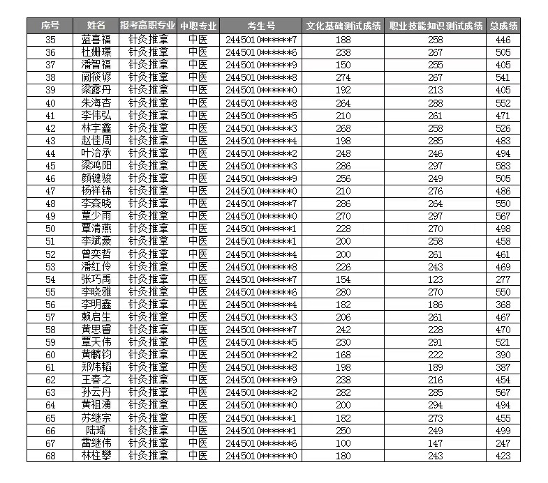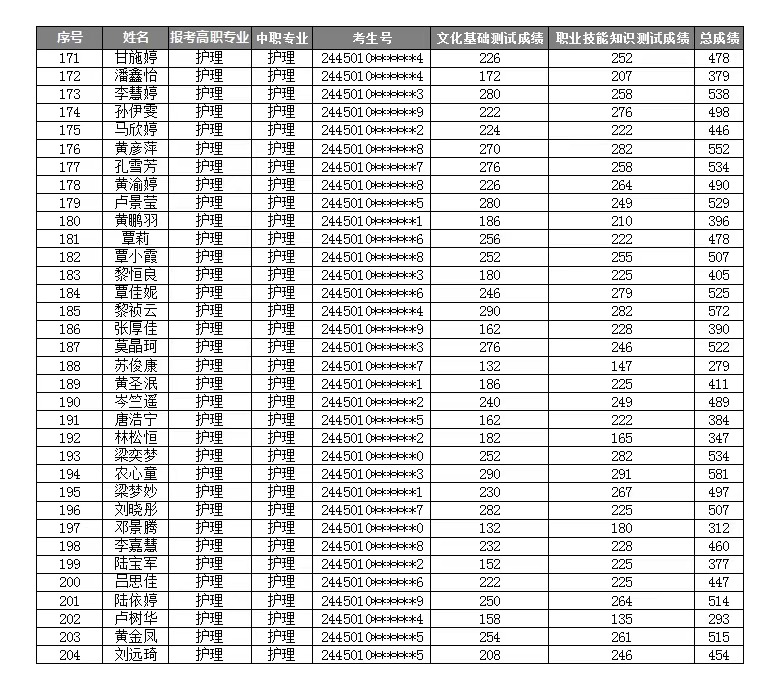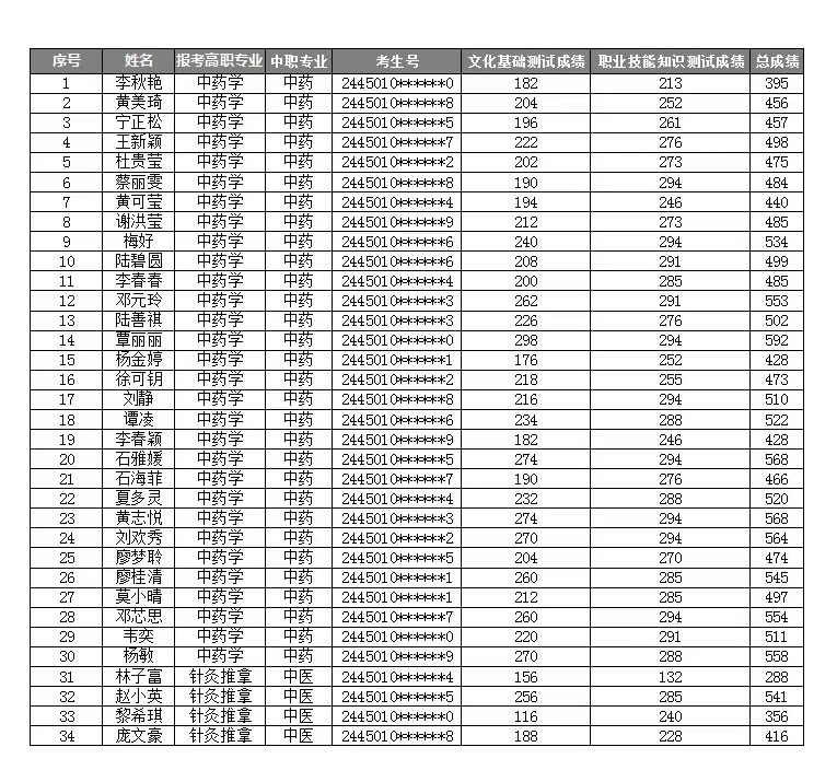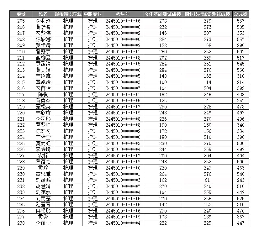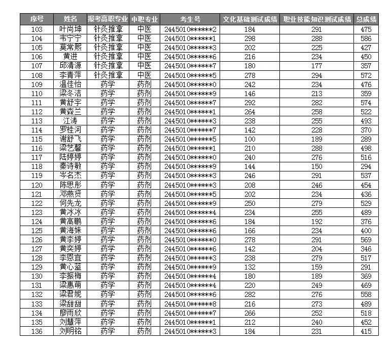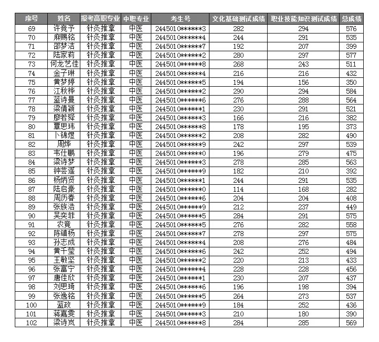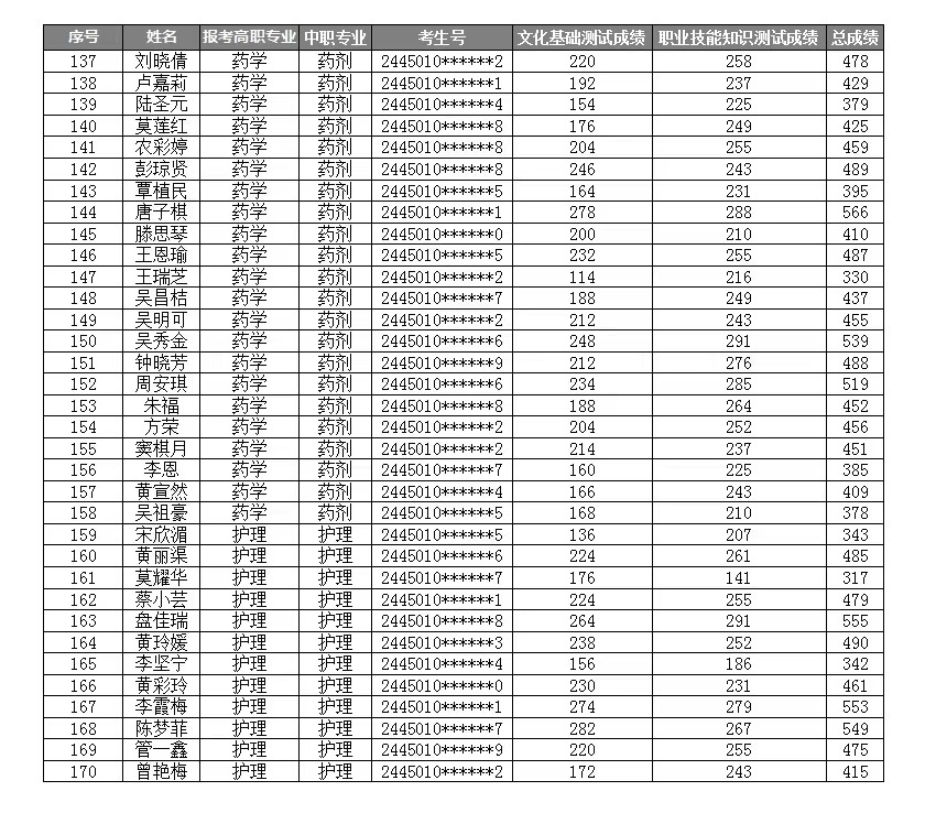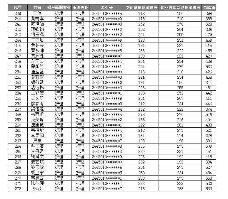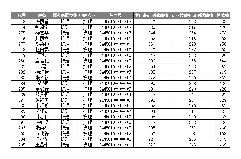 YABO鸭脖2024年高职对口中职(“2+3”直升)自主招生考试成绩表
