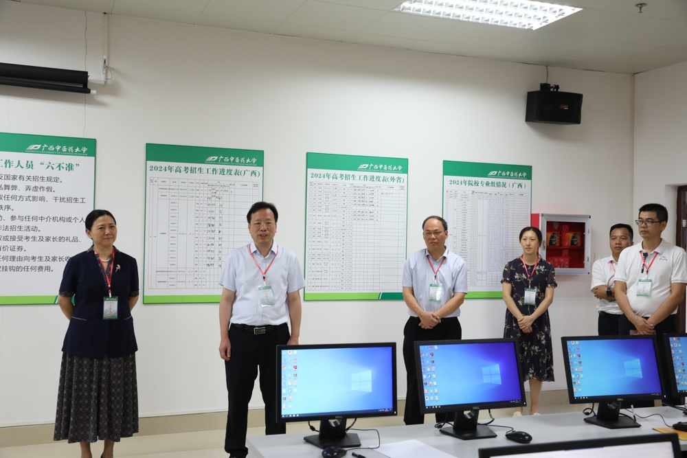 7月22日上午,学校党委书记莫锦荣,党委副书记、校长姚春到鸭脖招生录取现场,检查指导鸭脖2024年普通高考招生录取工作,慰问招生录取工作人员,学校党委副书记邹勇及相关职能部门负责人陪同。