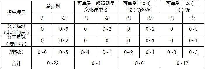 (二)招生计划:鸭脖2021年高水平运动队招生总计划为22人,按招生项目具体名额分配如下: