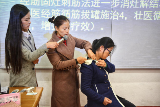 经筋疗法创始人黄敬伟教授嫡系孙及主要传承人黄芳琴医师现场展示操作