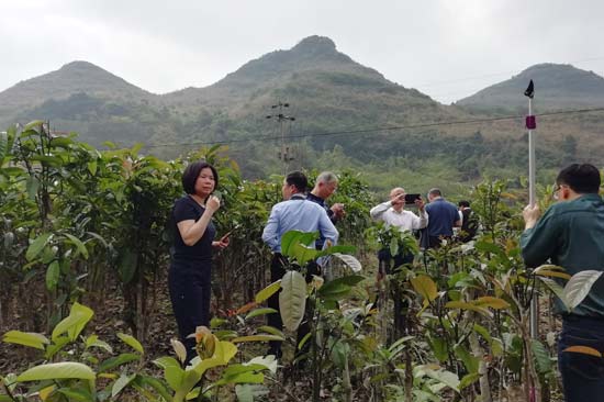 专家们先后来到大新县龙门乡苦丁村苦丁茶母树及县域内种植的基地进行现场考证,并对苦丁茶母树和县域内种植的苦丁茶标本进行鉴定。