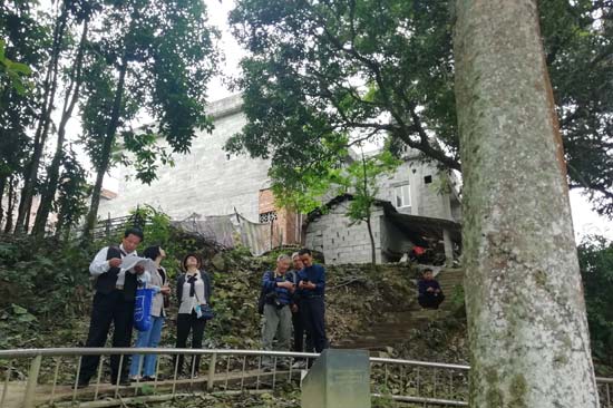 专家组在大新县龙门乡苦丁茶母树进行鉴定。潘彩芳摄