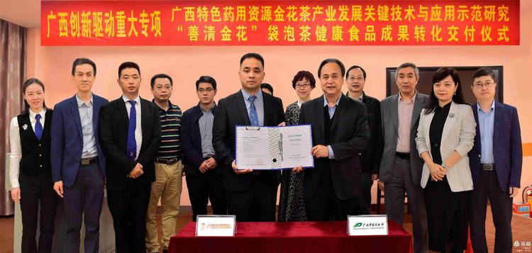 广西创新驱动重大专项“广西特色药用资源金花茶产业发展关键技术与应用示范研究”成果“善清金花”袋泡茶健康产品实现成果转化