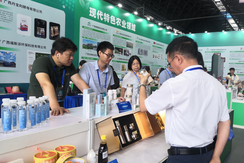本项目的研发成果亮相于科普创新成果展示区的现代特色农业领域展示区,主要参展的成果包括日化产品、功能食品、院内制剂等多种以甘蔗叶多糖或甘蔗原生态糖为主要原料制备而成的产品。这些产品形式丰富,符合现代化社会人民的健康需求,吸引不少巡展领导和参会人员驻足关注。