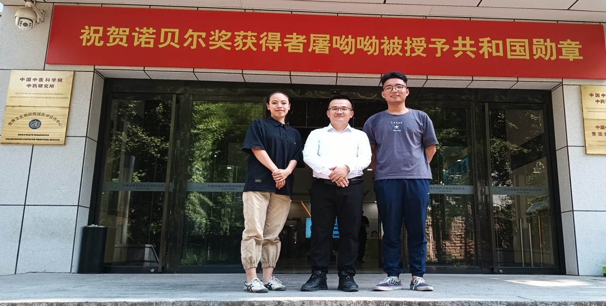 2023年6月20日,我平台实验室科研人员许立拔、贾立等人赴北京中国中医科学院访学,在中国中医科学院钟余特博士的带领下,参观了中药研究所中药资源中心、青蒿素研究中心(屠呦呦研究员工作室和实验室)、道地药材国家重点实验室培育基地等,并到医学实验中心现场观摩学习实验操作技术和实验室管理,受益匪浅。
