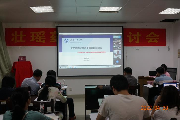 2022年04月29日,为了落实国务院“实施壮瑶医药振兴计划,建立质量标准体系”和自治区“壮瑶医药振兴计划”的文件精神,营造良好的学术氛围,加强学术交流,拓展学术领域,促进中医药壮瑶医药事业与产业高质量发展,我平台(项目团队)在YABO鸭脖仙葫校区格物楼C408学术报告厅(线上线下方式)召开壮瑶药学术研讨会(壮瑶药研究培训班),特邀中南大学 钟世安(教授 博导);广西民族大学 申利群(教授 博导); YABO鸭脖(按姓氏笔画为序) 王孝勋(博士 教授)、田慧(教授)、朱华(教授 博导)、苏健(博士 副研究员)、梁子宁(博士 教授)、傅鹏(博士 教授)、甄汉深(教授 博导)、滕建北(博士 教授)作学术报告及发言。