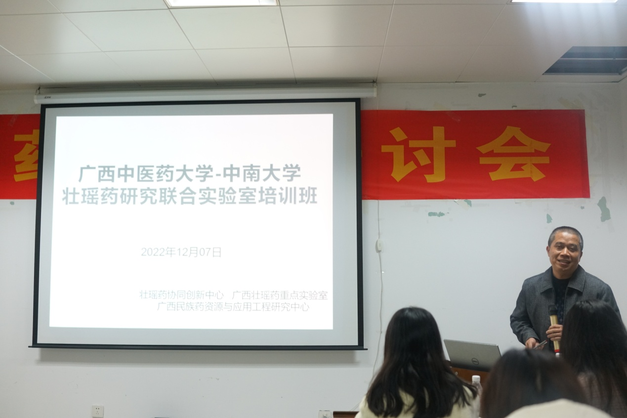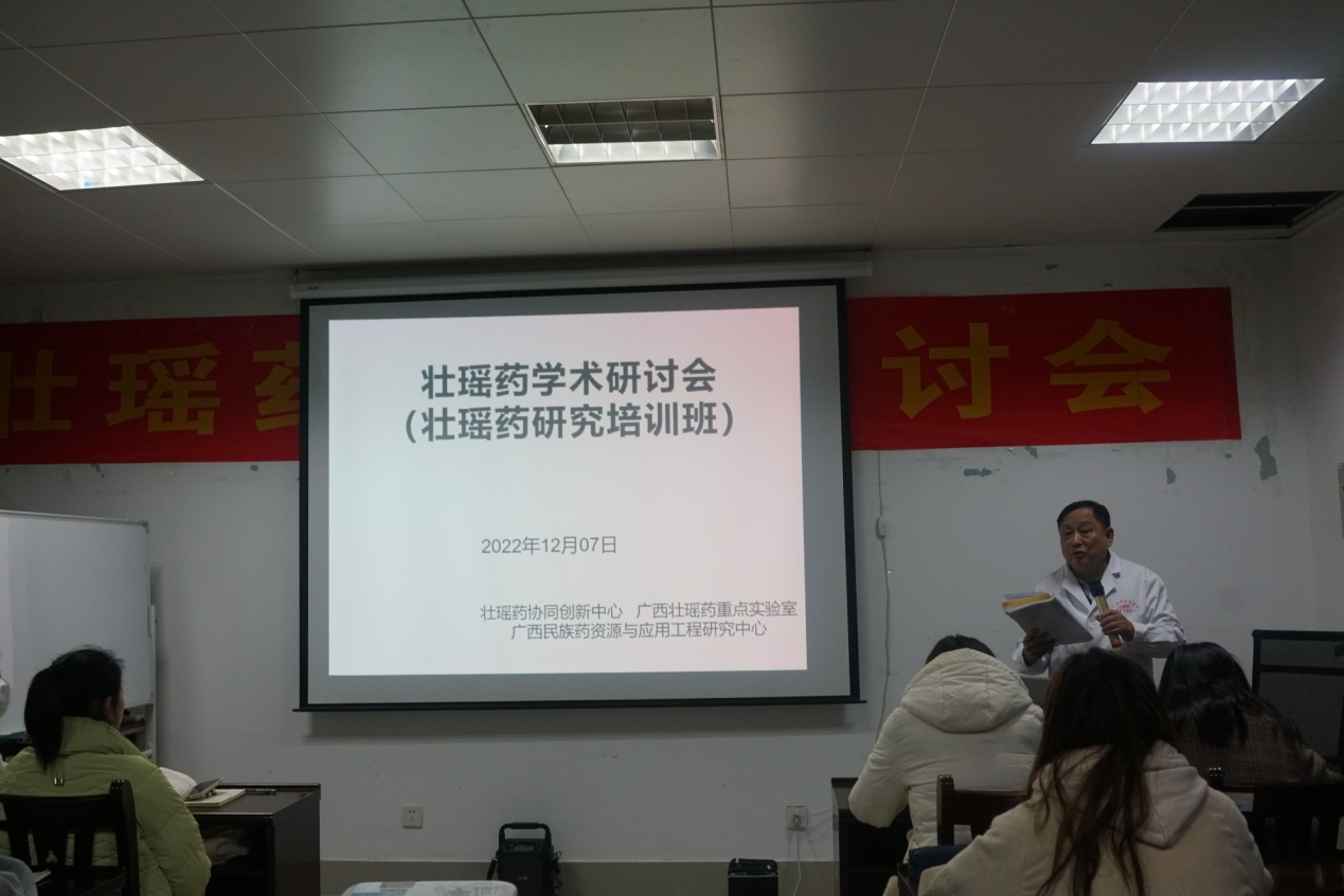 2022年12月7日,为了落实国务院“实施壮瑶医药振兴计划建立质量标准体系”和自治区“壮瑶医药振兴计划”的文件精神, 营造良好的学术氛围,加强学术交流,拓展学术领域,促进中医药壮瑶医药事业与产业高质量发展,广 西中医药大学-中南大学壮瑶药研究联合实验室、广西壮瑶药重点实验室、壮瑶药协同创新中心、广西民族药资源与应用工程研究中心、国家药监局中药材质量检测与评价重点实验室(联合单位)、国家科技部高端外国专家引进计划(新冠肺炎防控专项专家团队)、国家级一流专业中药学建设点、广西一流学科中药学(民族药学)、广西重点学科壮药学、壮瑶药质量标准研究“特聘专家"团队、广西产5种壮药材质量标准与产品开发研究项目团队、基于”光照-质量"相应的广西产铁皮石斛药材品质评价研究项目团队等召开壮瑶药学术研讨会(培训班) 。