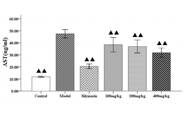 图4-2 拳卷地钱胶囊对血清AST水平的影响