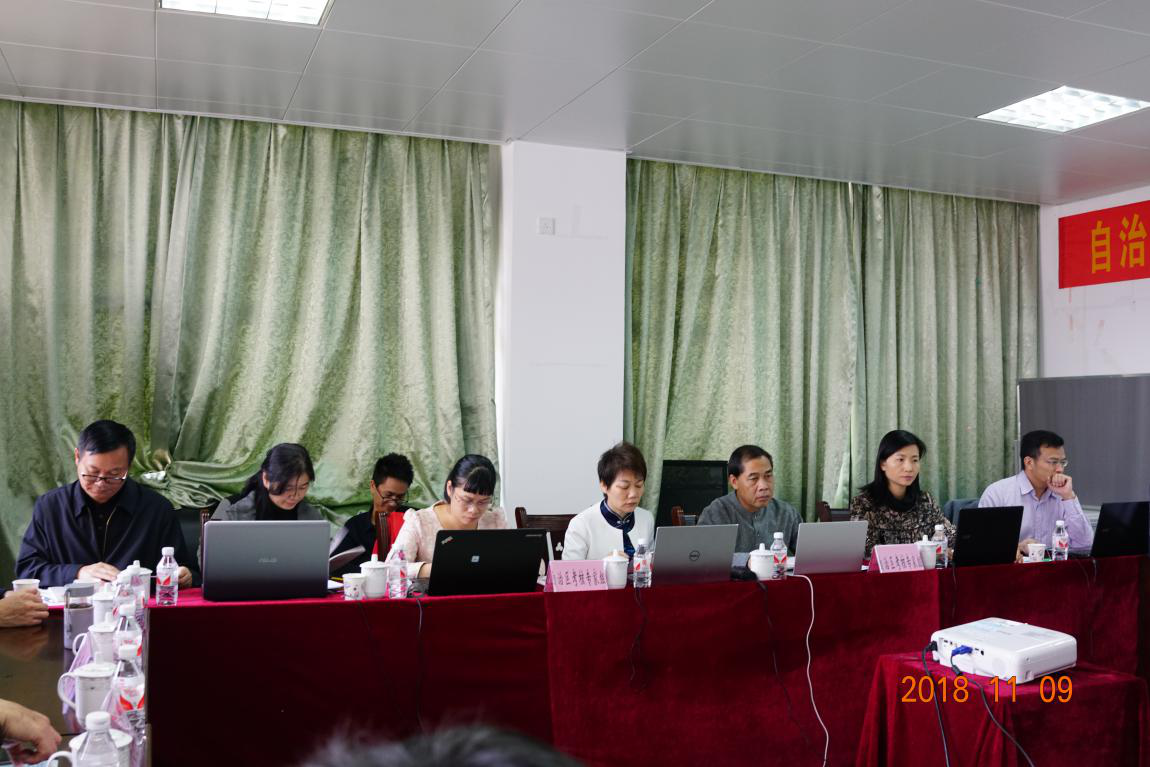 2018年11月09日上午,自治区重点实验室考核专家组在广西科技开发院党委书记黄科林和黄仁彬组长带领下,一行9人(叶琨教授、杨和平教授、蒋受军教授、韦坤华教授等)到我实验室开展自治区重点实验室现场考核评估,YABO鸭脖党委副书记庞宇舟教授、学科办副主任郑景辉博士、科技处副处长王孝勋博士、实验室主任朱华教授、副主任卢汝梅教授、苏健博士、傅鹏博士及本实验室教授及骨干蓝毓营教授、甄汉深教授、田慧教授、陈卫卫教授、杨秀芬教授、梁洁教授、夏星教授、梁子宁教授、谭勇教授、韦杏教授、王柳萍副教授、李冰副教授、谢锋博士、笪舫芳博士等30多人参加此次评估会。庞宇舟副书记做重要讲话,实验室主任朱华教授做实验室建设工作汇报,黄科林、黄仁彬等自治区重点实验室考核专家组对本实验室的建设工作给予了肯定的评价。