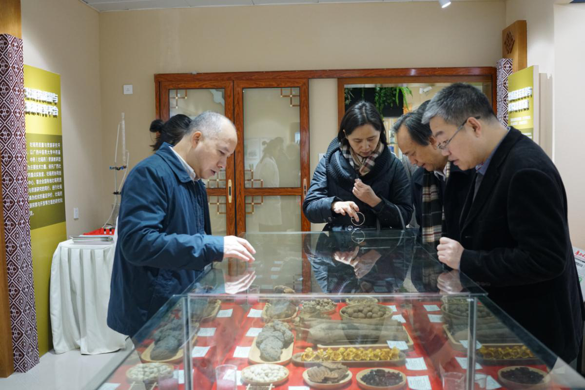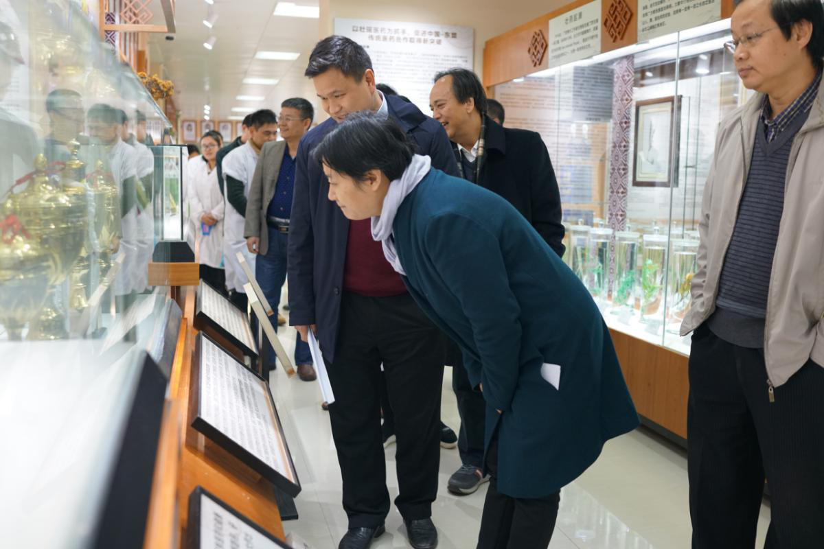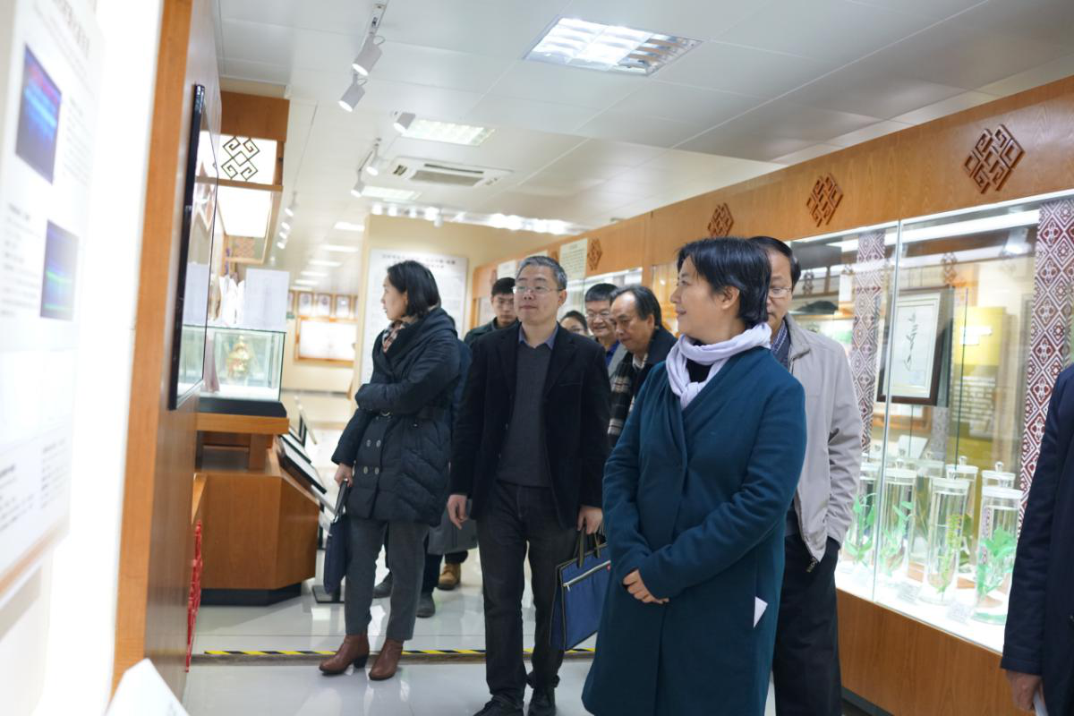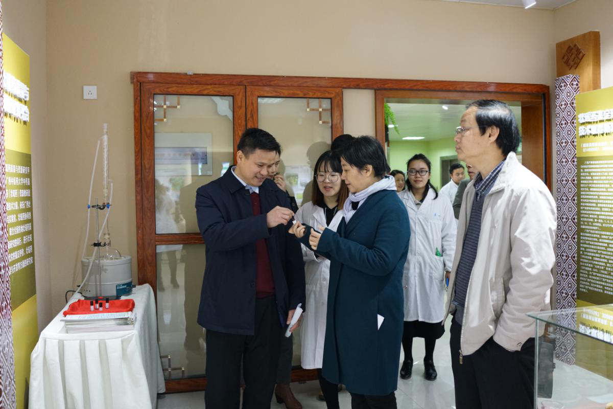 2019年1月16日上午,自治区中医药管理局姚春局长、鸭脖戴铭副校长莅临我实验室指导工作,姚春局长、戴副校长一行考察我实验室主办的壮瑶药研究成果展暨壮瑶药资源普查标本库及数据中心,本平台副主任傅鹏博士、苏健博士首先代表本实验室主任朱华教授对各位莅临表示热烈欢迎和衷心感谢,并就壮瑶药理论传承、资源普查、质量标准三个方面的研究成果进行了汇报。姚局长对本实验室工作所取得的成绩给予高度肯定。对本实验室自主研发的壮瑶药产品百合玉竹酒和黄精桑葚酒表示赞扬。她表示,继续大力支持壮瑶药协同创新中心、壮瑶药重点实验室的科技工作,特别是壮瑶药高质量成果产业化工作。自治区中医药管理局副局长陈赤、处长黎甲文 、副处长刘畅和鸭脖邓家刚教授、陈勇教授及夏天、覃海、张雯艳等参加本次活动。