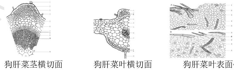 火炭母根横切面墨线图 火炭母茎横切面墨线图 火炭母叶横切面墨线图