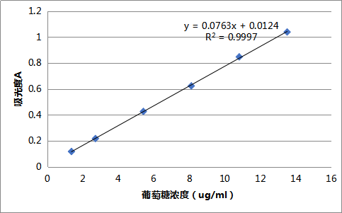 取D-无水葡萄糖标准品适量,精密称定,加蒸馏水制成90ug·ml-1的对照品溶液。