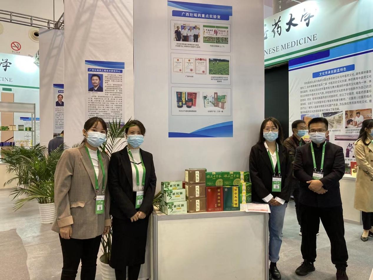 此次展览,学校本部组织了近百种中医药民族医药产业特色科技创新成果参加此次展览。我平台(广西壮瑶药重点实验室、壮瑶药协同创新中心、广西民族药资源与应用工程研究中心等)所出品的广西特色中药壮瑶药产品如黄精桑椹酒、百合玉竹酒、葛花露、沙罗玉竹佛茶、银花牛蒡茶以及中药材种植基地等参展,得到了与会者广泛好评。