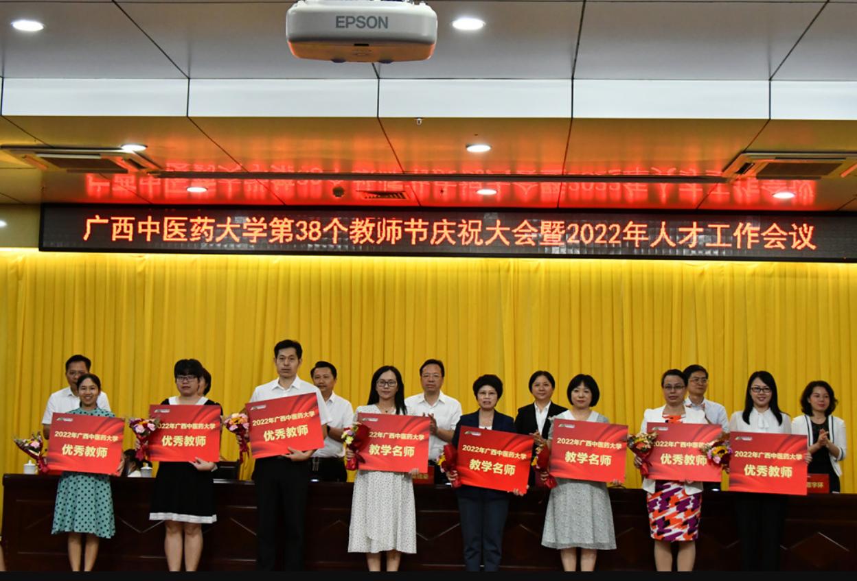莫锦荣对做好下一步学校人才工作提出了六点要求:一是深入学习贯彻习近平总书记关于人才工作的新理念新战略新举措,牢牢把握新时代学校人才工作的正确方向。二是进一步加大人才培养力度,努力搭建人才成长平台。三是进一步加大人才引进力度,尤其是优秀博士、“岐黄工程”高层次人才团队的引进力度。四是进一步用好用活各类人才,形成广纳贤才、人尽其才的良好局面。五是进一步营造关心关爱人才的良好环境。要破除人才发展的体制机制障碍,用心服务人才,优化人才表彰奖励制度,在全校营造学习先进、争当先进的良好氛围。六是进一步加强党对人才工作的全面领导。姚春指出,学校高度重视师资队伍建设工作,把“人才强校”确定为学校发展的战略之一,积极营造识才、爱才、敬才、用才的环境,在师德师风建设、人才引进使用、教育教学方面、科学研究等方面取得了优异的成绩。姚春指出,今年教师节的主题是“迎接党的二十大,培根铸魂育新人”,这一主题饱含着深刻意蕴和殷切期待。要坚定理想信念,当好“筑梦人”,要弘扬伟大建党精神,传承红色基因,从中国共产党百年奋斗历程中汲取奋进力量,切实担当“为党育人、为国育才”的光荣使命,培养实现中华民族伟大复兴中国梦的“梦之队”。会上,何并文宣读表彰名单,主席台上的校领导为第四批国医大师,第二批全国名中医,第二批全国高校黄大年式教师团队,第七批全国老中医药专家学术经验继承工作指导老师,2022年桂派中医大师、2022年广西岐黄学者、国家中医药管理局青年岐黄学者,广西教学名师、广西优秀教师、优秀教育工作者等先进个人、先进集体颁奖。