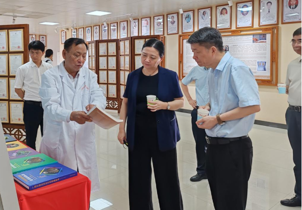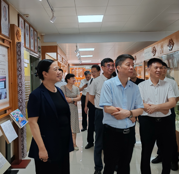 会后,鸭脖党委副书记、校长姚春,党委常委、副校长肖健和广西师范大学党委副书记、校长孙杰远及党委常委、副校长宋树祥、沈星灿、原校长梁宏等一行九人实地调研了广西壮瑶药重点实验室[ 壮瑶药协同创新中心、广西壮族自治区民族药资源与应用工程研究中心、壮瑶药材开发及产业化广西高校工程研究中心、国家药监局中药材质量监测与评价重点实验室(联合单位)]。实验室负责人介绍了平台建设情况,重点展示了壮瑶药理论与实践应用研究成果、科技奖项、中药资源普查标本库、壮瑶药标本数据中心以及自主研发的兰香草精油等产业化成果和团队编著出版的《壮瑶药研究》、《中药光照鉴定学》等前沿学术专著。