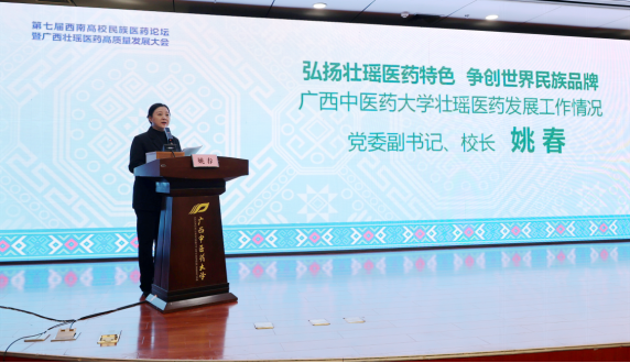 姚春介绍了鸭脖在壮瑶医药理论研究、人才培养、科技创新、服务社会等方面取得的一系列重大突破。她表示,学校将以更加坚定的文化自信,深化对壮瑶医药理论精髓、诊疗技术和养生文化的系统挖掘与活态传承;将以更加开放的创新姿态,融汇现代科技,聚力攻克关键核心技术瓶颈,不断提升壮瑶医药科学价值和应用水平;将以更加广阔的国际视野,依托广西独特的区位优势,积极拓展国际合作新渠道,推动壮瑶医药更深入地走向世界,将壮瑶医药打造成为一张闪亮的“中国名片”和“广西名片”。