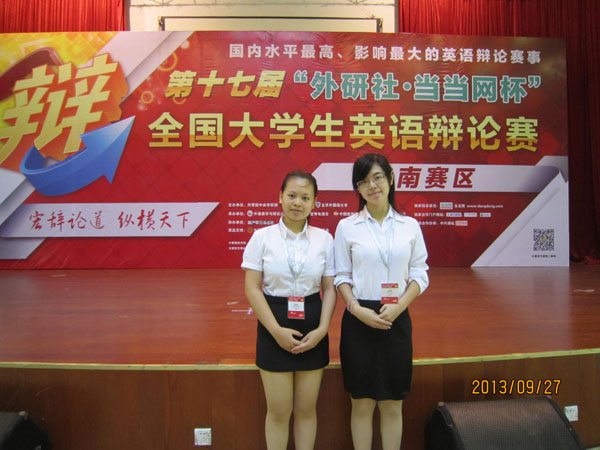 9月26日——9月30日,第17届“外研社·当当网杯”全国大学生英语辩论赛华南赛区比赛在广州举行。鸭脖11级壮医黄孟欣同学、11级药学王美琪同学代表学校参赛,荣获三等奖。