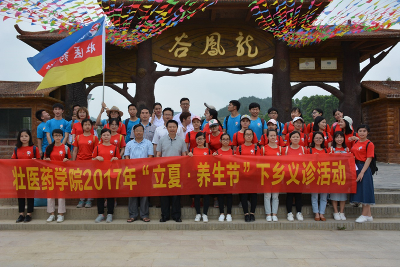 2017年5月6日,壮医药学院来到南宁良庆区龙凤谷开展了“立夏 养生节”下乡义诊活动。YABO鸭脖庞宇舟副校长,壮医药学院蓝毓营院长、韦英才副院长莅临现场指导,壮医药学院团委副书记刘婷老师,教学办张青槐老师以及2013级壮医学专业35名学生参加了此次活动。