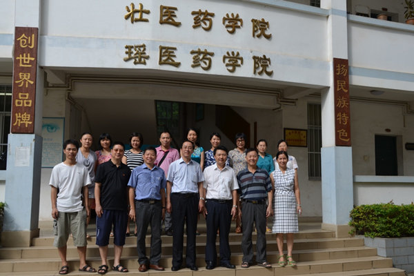 讲座会前,在副校长庞宇舟、壮医药学院院长林辰、瑶医药学院院长李彤等人的陪同下,庞宗然教授参观了明秀校区壮医学教学实验中心、壮药标本实验室、壮医医史文化陈列室、壮医特色疗法实验室等,庞副校长还向客人赠送了《中国壮医学》、《实用瑶医学》等壮瑶医学著作。