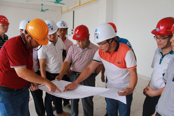 罗伟生副校长听取施工方介绍图纸