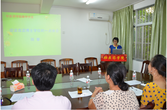 为规范我院课堂教学,加强教学师资队伍的建设,9月16日壮医药学院举行教研室学习活动,集体学习《YABO鸭脖课堂教学基本规范》,会上陈攀老师还跟大家分享了读博的收获和体会。