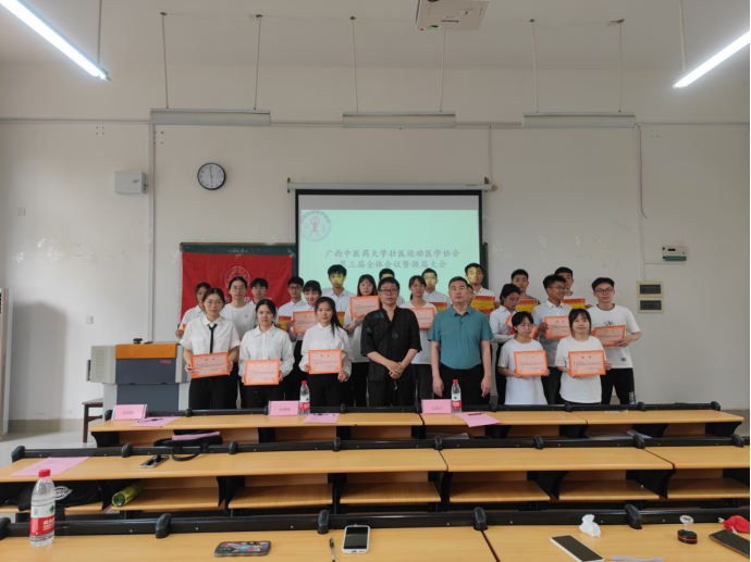 会上,学术指导委员会组长张青槐副教授对壮医运动医学协会的未来发展寄予了殷切希望,指出协会应当以弘扬壮医为己任,希望同学们通过学术讲座、技能培训等多种形式进行壮医运动医学疗法的学习和科学研究。学术指导委员会刘儒鹏博士强调:协会要以促进传统医学在运动医学类研究的专项人才培养和学科发展为使命,充分发挥中、壮医相关专家特长,努力扩大传统医学理论和疗法在运动医学中的影响力。会长黄世贤同学总结了本年度协会工作取得的成绩和不足,并对下一年度工作进行规划。随后开展换届大会,经协会会员公平竞选,协会成员公开投票,公证人现场公证后,协会选举出了新一届的负责人和理事。