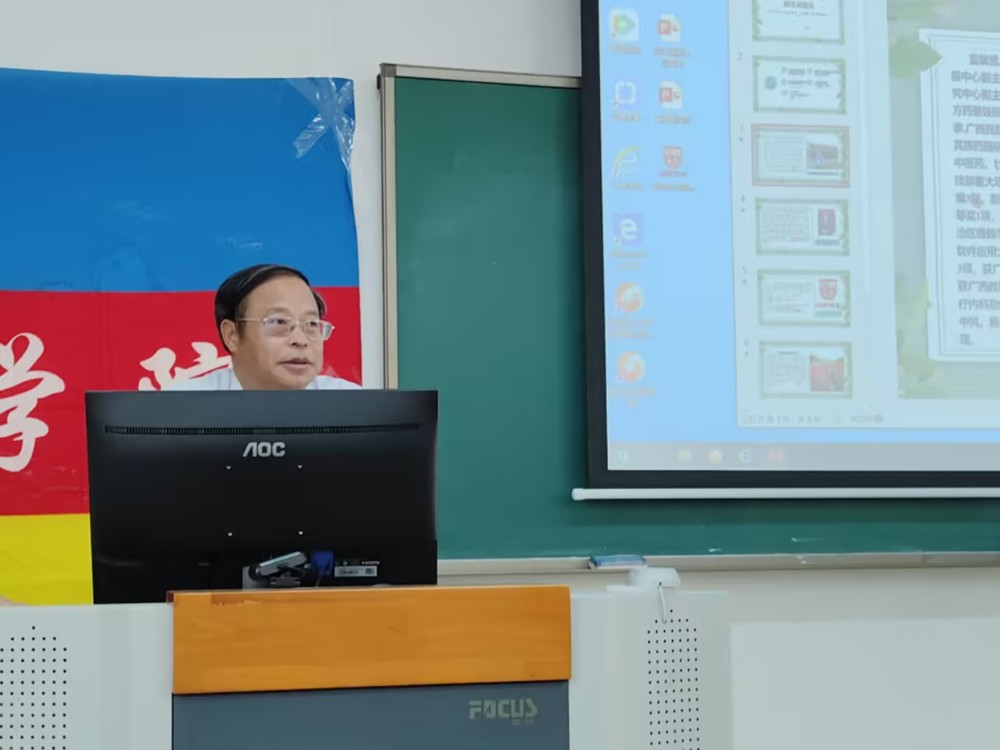 蓝毓营向同学们介绍了壮医药学院历史、学科建设、专业建设等内容,让同学们对自己的专业有了进一步的认识。他鼓励同学们传承并发扬光大壮医药,承担起壮医药科研创新、卓越发展的神圣使命。
