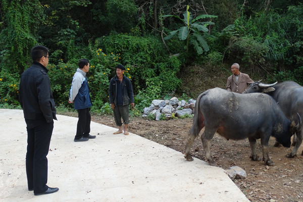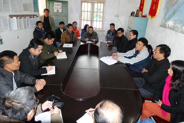 随后,董塔健副书记一行来到都结乡念潭村。念潭村距都结乡人民政府所在地3.5公里,但地处在石山区,进村需要穿过两个隧道,全村耕地面积638亩,其中水田面积仅19亩,饮水困难。董塔健副书记一行与都结乡党委书记隆耀强、驻念潭村第一书记范小明及精准扶贫识别工作队员黄小鸥、黄富军、伍世轰,驻平养村第一书记李麦及精准扶贫识别工作队员汤宇成、胡柳燕、花光宗等进行座谈,听取了两个村第一书记精准扶贫识别工作进展情况汇报,并考察了念潭村基础设施建设情况。