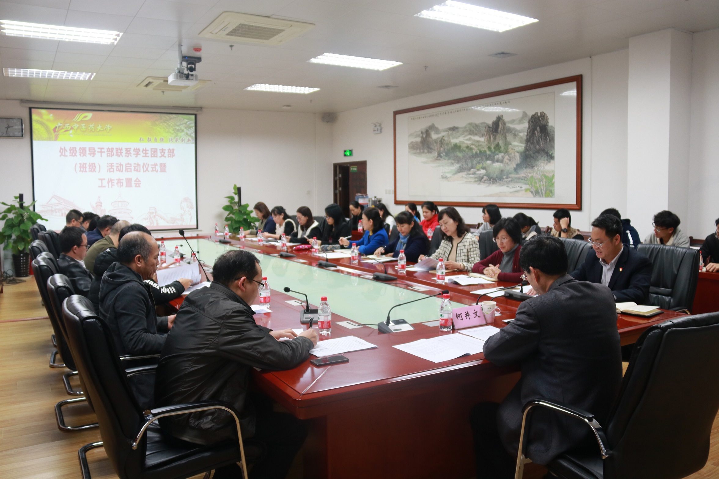 为深入学习贯彻习近平新时代中国特色社会主义思想和党的十九大精神,推进鸭脖“两学一做”常态化制度化建设,把贯彻落实全国高校思想政治工作会议精神进一步引向深入,全面构建“三全育人”体系,根据校党委统一部署,鸭脖处级领导干部联系学生团支部(班级)活动启动仪式暨工作布置会于2019年3月19日在仙葫校区图书馆323会议室顺利召开。